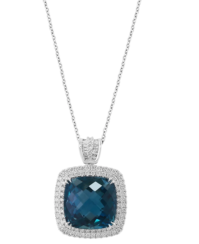 Effy Blue Topaz (5-7/8 ct. t.w.) & Diamond (1/10 ct. t.w.) Halo 18" Pendant Necklace in Sterling Silver & 18k Gold-Plate