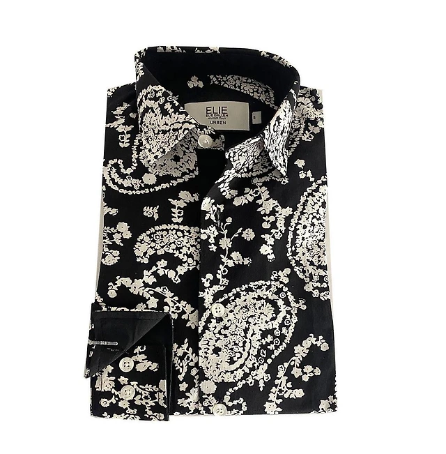 Elie Balleh Big Boys Black Slim Fit Paisley Print Shirt
