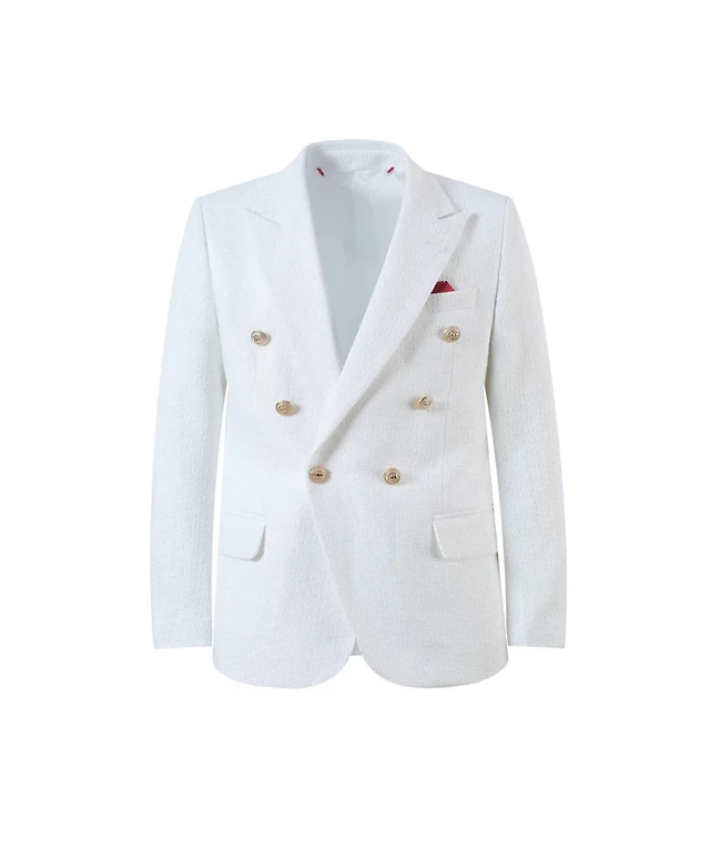 Elie Balleh Boys White Plaid Boucle Slim Fit Jacket