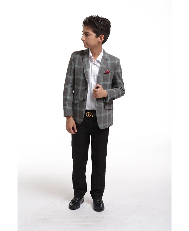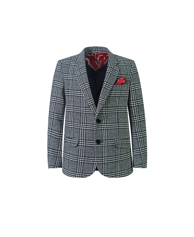 Elie Balleh Boys Grey Slim Fit Plaid Blazer
