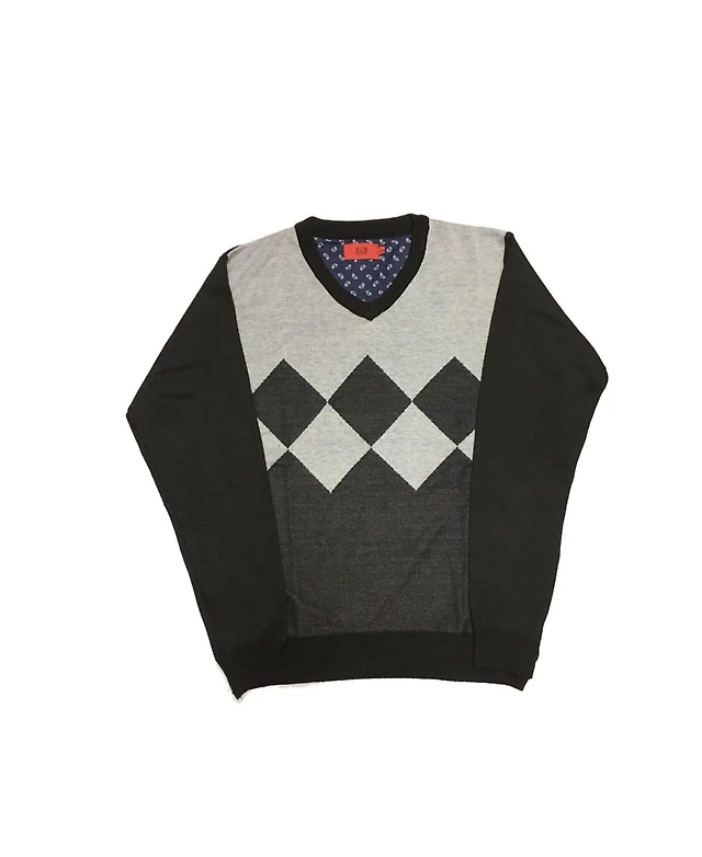 Elie Balleh Boys Black Crew Neck Argyle Sweater