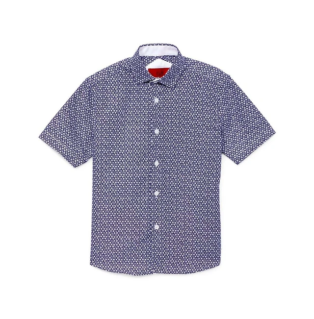 Elie Balleh Big Boys Red Geometric Button-Down Slim Fit Short Sleeve Shirt