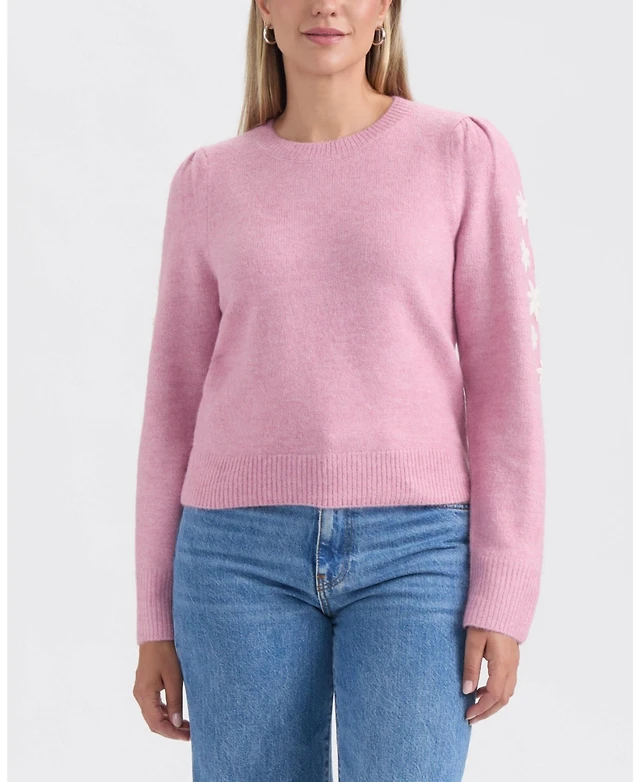 Ellen Tracy Women's Short Sleeve Sweater with Crochet Flowers