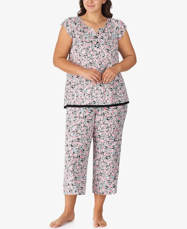 Ellen Tracy Plus Size Short Sleeve Cropped Pajama Set