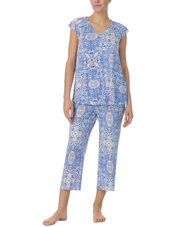Ellen Tracy Women's Printed Short-Sleeve Cropped Pajama Set