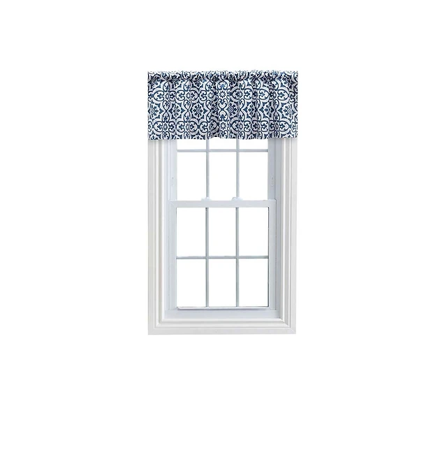 Ellis Curtain Manchester 3" Rod Pocket 100% Cotton Machine Wash and Dry Scallop Valance Lined 50" x 16" Blue