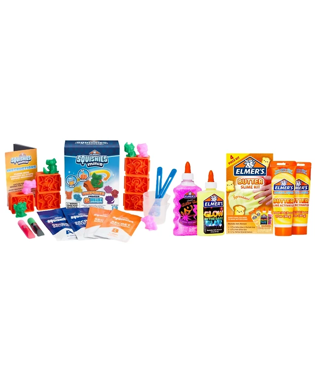 Elmer's Diy Slime & Squishy Toy Bundle – Zoo Squishies Minis & Butter Slime Kit with Glow-in-the-Dark & Glitter Glue, Kids Arts & Crafts