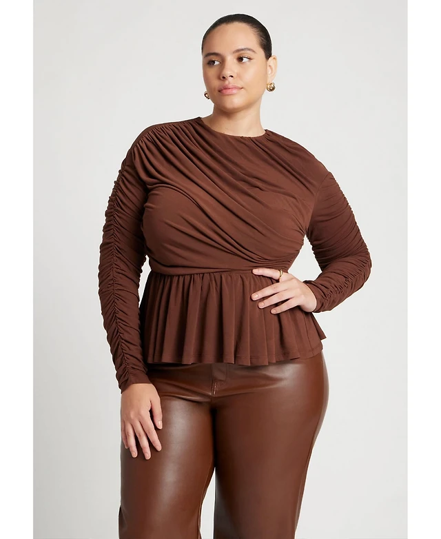 Eloquii Women's Plus Dramatic Faux Wrap Top