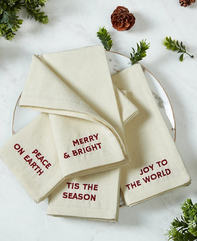Elrene Joyful Sentiment Embroidered Napkins, Set of 4, 17" x