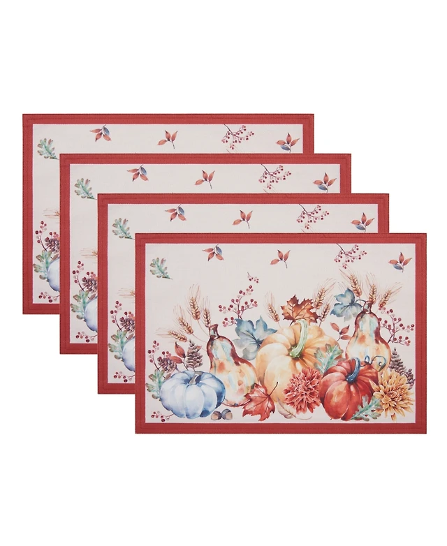 Elrene Botanical Harvest Pumpkin Engineered Placemats, Set of 4, 13" x 19"