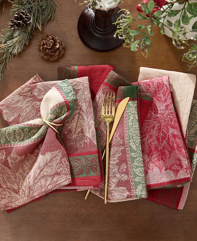 Elrene Classic Holly Scallop Border Napkins 17"x 17", Set of 4