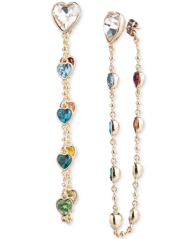 Emily in Paris Gold-plated Multicolor Heart & Chain Front-to-Back Earrings