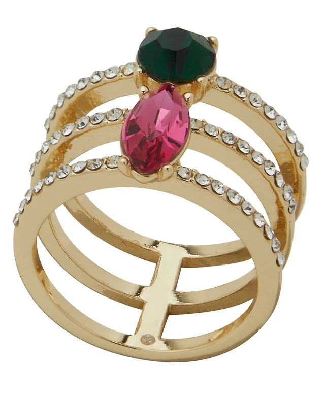 Emily in Paris Glass Stone & Cubic Zirconia Gold-Tone Pave Stackable Ring