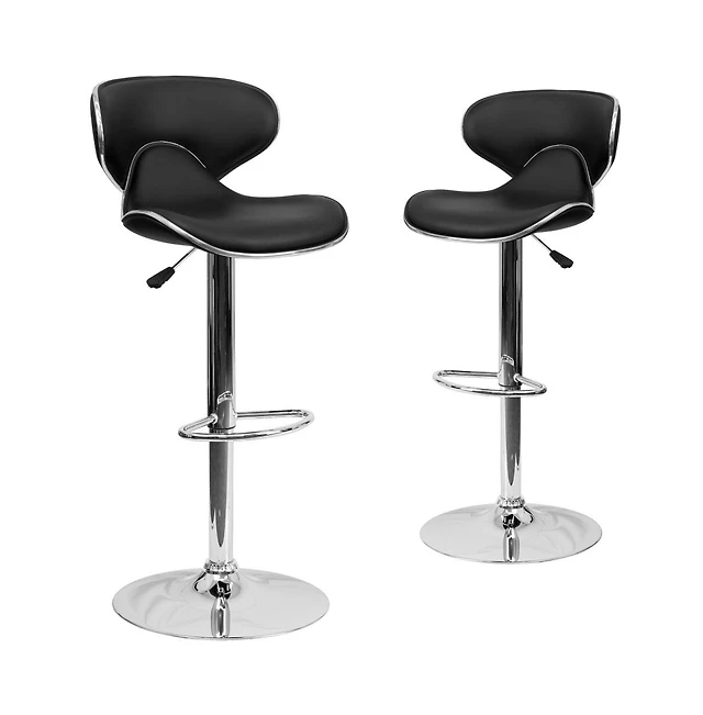 2 Pack Contemporary Vinyl Adjustable Height Barstool With Rolled Seat And Chrome Base