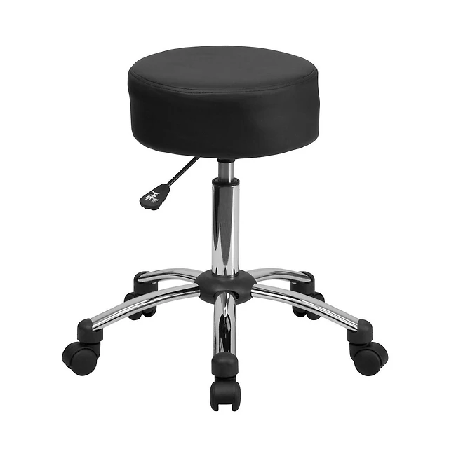 Coti Modern Channel Tufted Upholstered Height Adjustable Mid-Back Stool And Pedestal Base With Footrest
