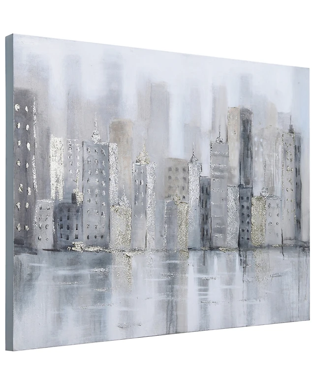 Empire Art Direct Foggy City Textured Metallic Hand Painted Canvas Wall Art, 30" x 40"