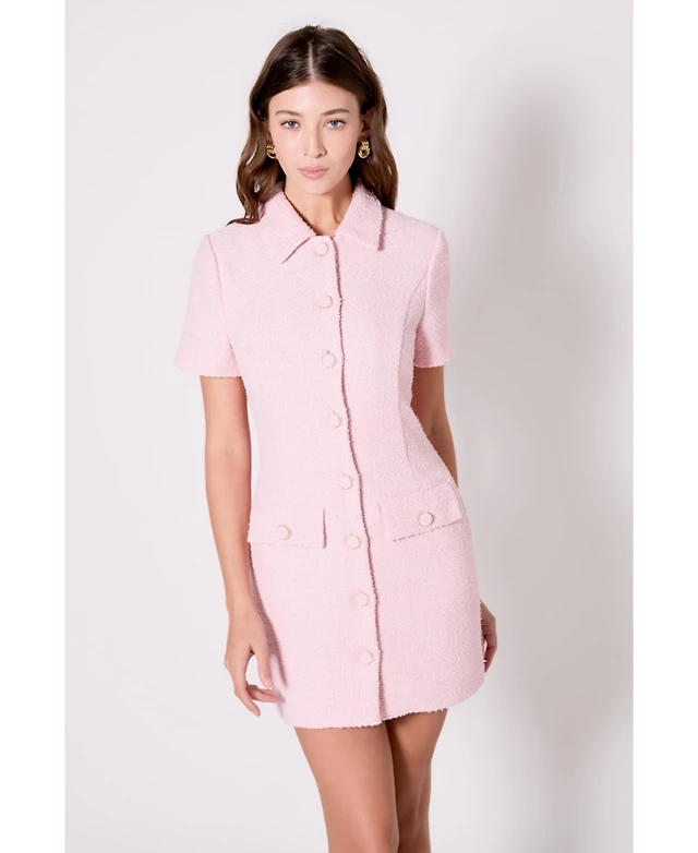 endless rose Women's Tweed Puff Sleeve Mini Dress