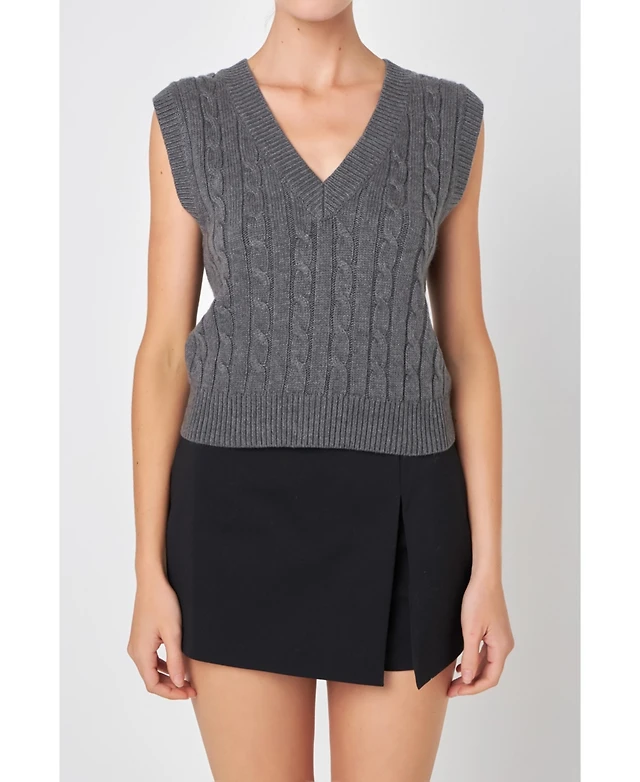 English Factory Women's Sleeveless Ribbed Knit Sweater