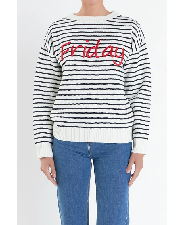 English Factory Women's Heart Embroidered Stripe T Shirt