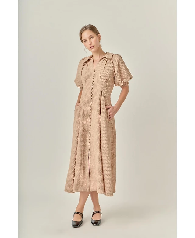 English Factory Women's Plaid Sheer Puff Sleeve Top