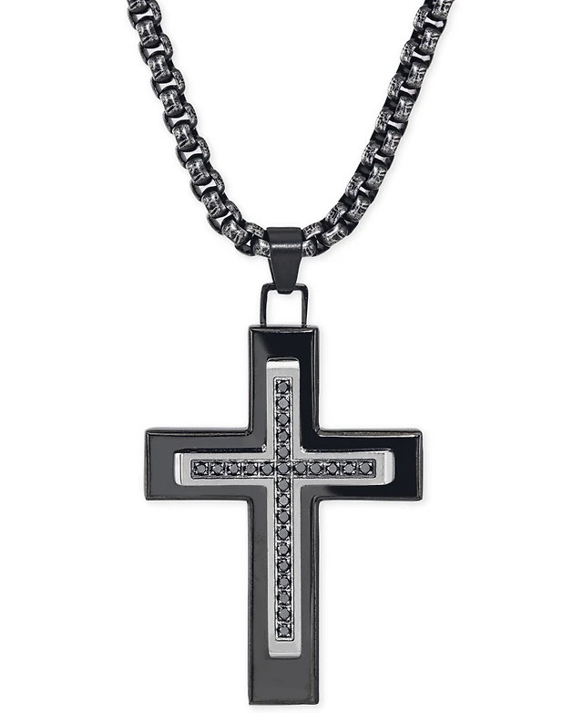 Esquire Men's Jewelry Diamond Accent Cross 22" Pendant Necklace in Stainless Steel & Black Ion-Plate, Created for Macy's