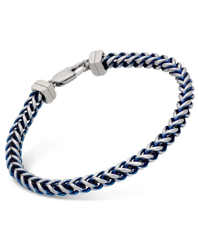 Esquire Men's Jewelry Link Chain Bracelet in Stainless Steel and Blue Ion-Plating, Created for Macy's