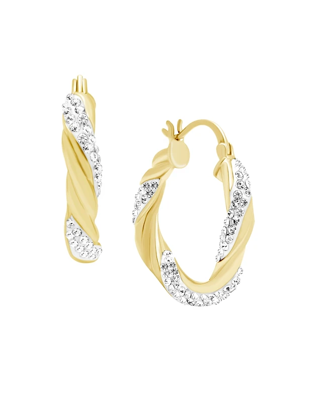Essentials Crystal Double Small Hoop Earrings in Gold-Plate, 1"