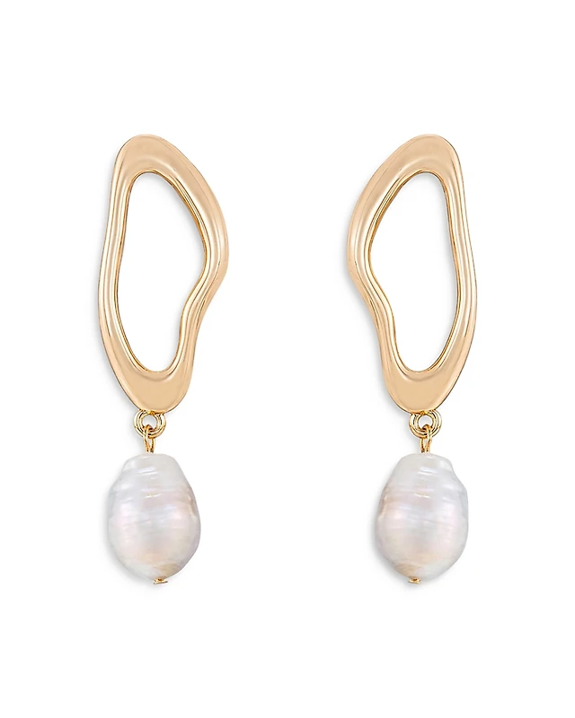 Ettika Oval Baroque Pearl Drop Earrings