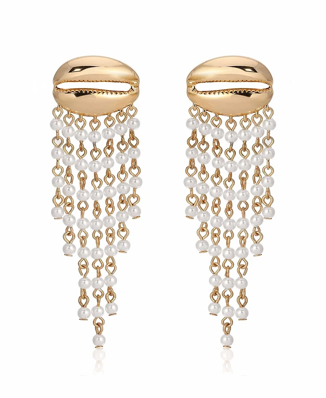 Ettika Gatsby Fringe Drop Statement Earrings in 18K Gold Plate
