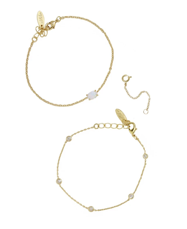 Ettika Opal Crystal Dainty Women's Bracelet Set with Extender Add On