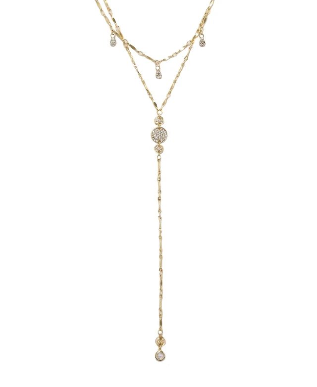 Ettika Simplistic Crystal Layered Lariat Necklace Set