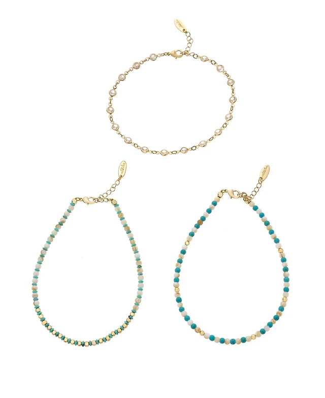 Ettika Turquoise and Imitation Pearl Anklet Set