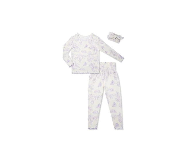Everly Grey Little Girls Charlie Fitted Two-Piece Long Sleeve Pajamas & Head Wrap Set