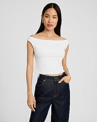 Body Contour Stretch Cotton Off The Shoulder Tee