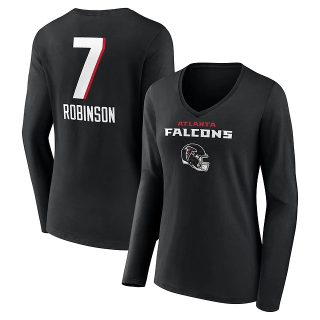 Women's Bijan Robinson Black Atlanta Falcons Team Wordmark Name & Number Long Sleeve V-Neck T-Shirt