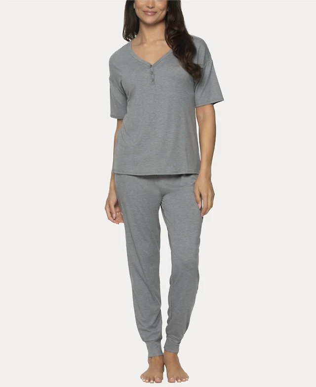 Felina Women's Jolie V-Neck Henley and Pant Lounge Set