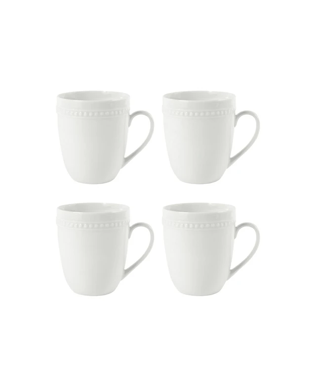Fitz and Floyd Everyday Whiteware Beaded Mug 4 Piece Set