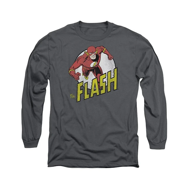 Flash Men's Dc Comics Logo Distressed Long Sleeve Adult Tee / T-Shirt
