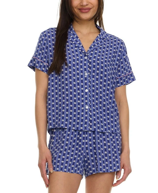 Flora by Nikrooz Women's Annie Button Down Shorty Notch Pajama Set, 2 Piece
