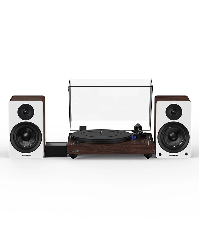Fluance Reference RT85 High Fidelity Vinyl Turntable (White), PA10 Phono Preamp, Ai41 Powered 5" Bookshelf Speakers (White Walnut), Ortofon 2M Bl