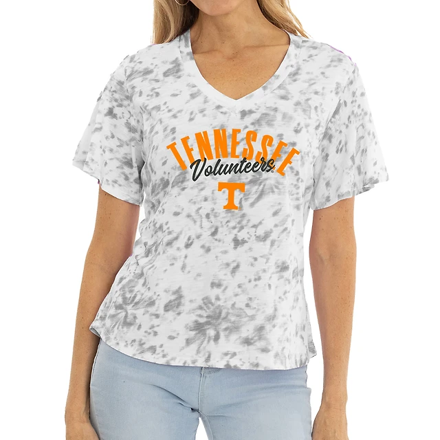 Women's White/Gray Tennessee Volunteers Faye Tie-Dye V-Neck T-Shirt