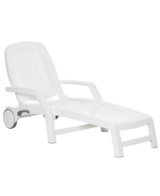 Flynama Outdoor Lounge Chair, Patio Lounger with 5-Position Reclining Backrest and 2 Wheels for Poolside, Beach, Lawn, Cream White