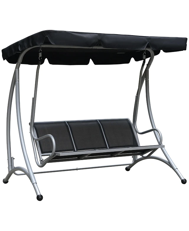 Flynama 3-Seat Patio Swing Chair, Outdoor Canopy Swing with Stand, Adjustable Shade, Steel Frame for Adults, Garden, Poolside, Black