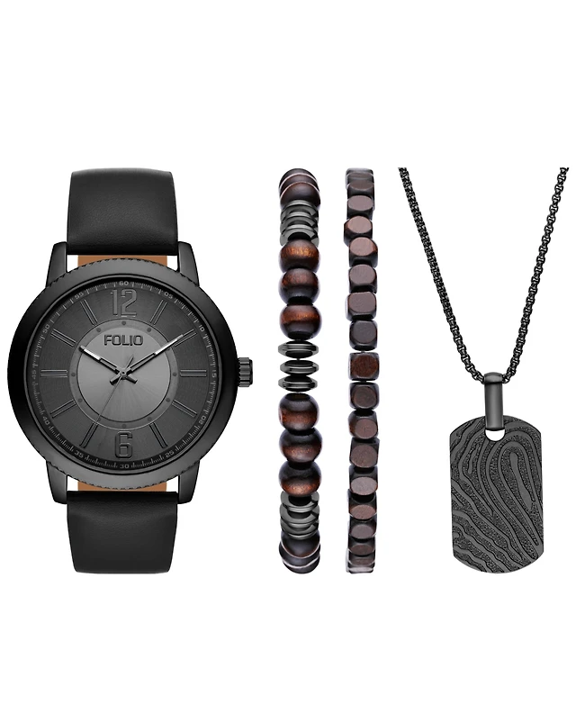 Folio Men's Quartz Three-Hand Black Alloy Watch Set, 42mm