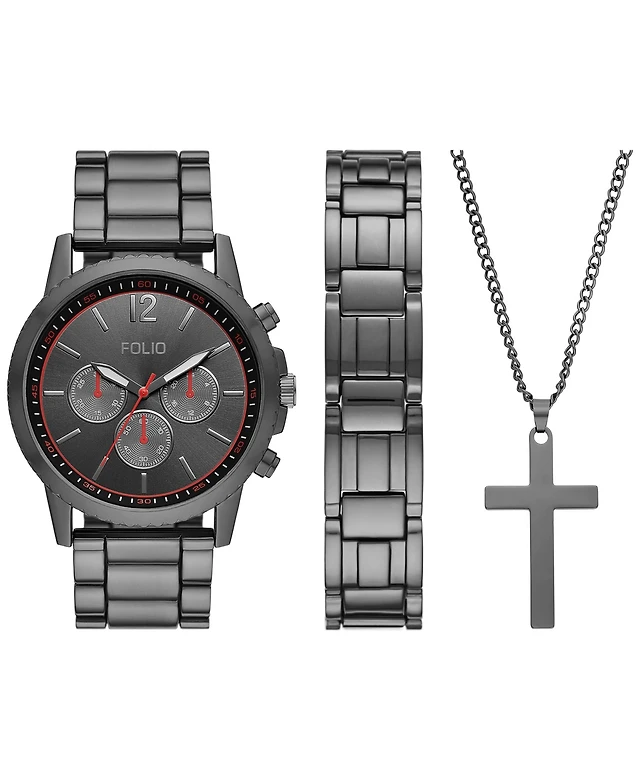 Folio Men's Three Hand Gunmetal Alloy Watch 46mm Gift Set