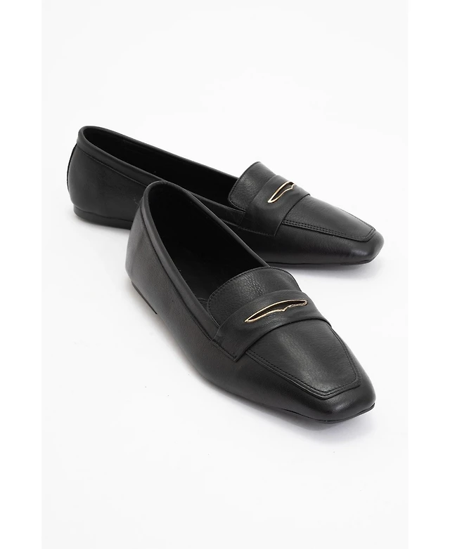 Noir Leather Flat Loafers (Women)