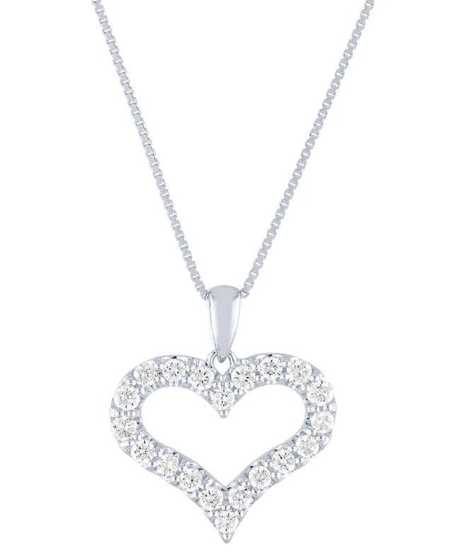 Forever Grown Diamonds Lab-Grown Diamond Heart 18" Pendant Necklace (1 ct. t.w.) Sterling Silver or 14k Gold-Plated