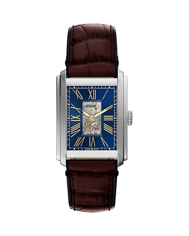 Fossil Carraway Automatic Brown Croc-Embossed Leather Watch