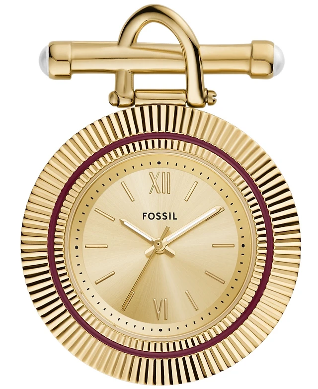 Fossil Women's Scarlette Three-Hand Gold-Tone Stainless Steel Watch Brooch, 35mm