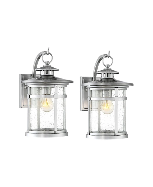Franklin Iron Works Callaway Modern Industrial Outdoor Wall Light Fixtures Set of 2 Chrome Metal 11 3/4" Clear Seedy Glass for Post Barn